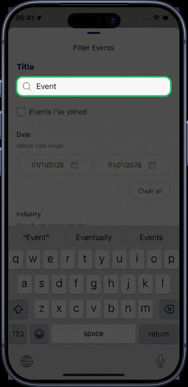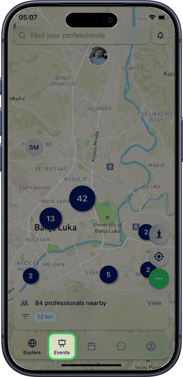 Tap the Events icon in the bottom navigation bar to open the events screen.
