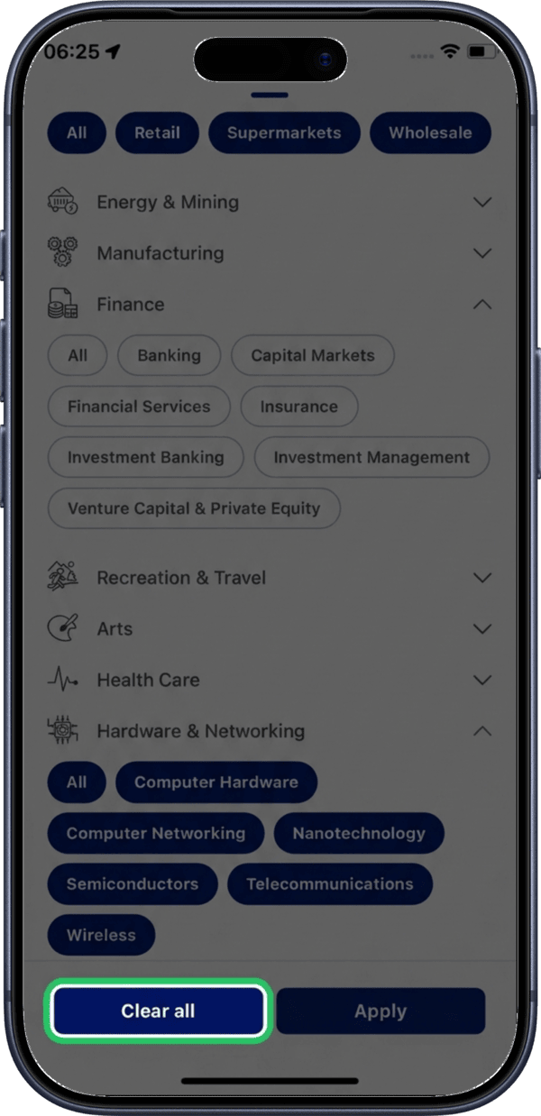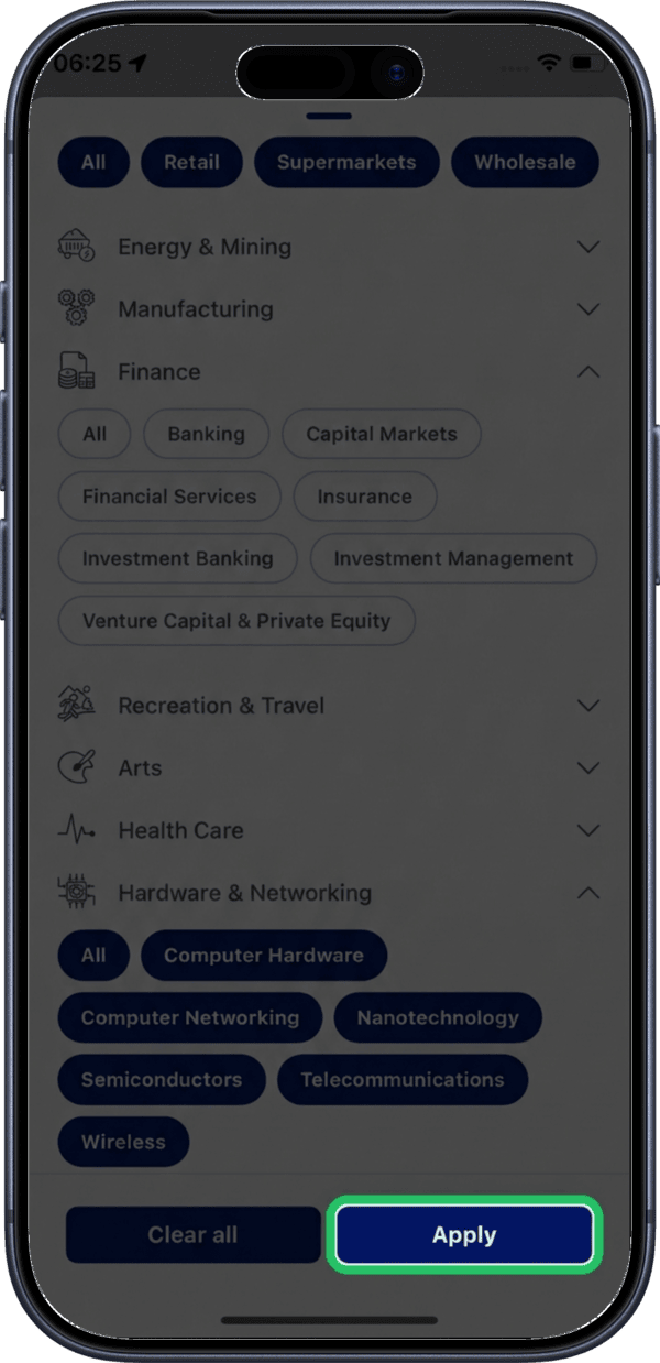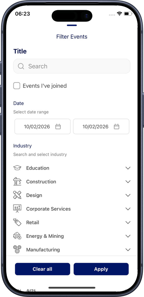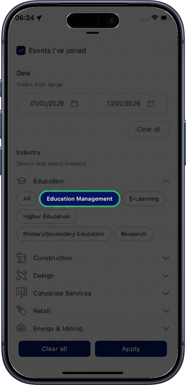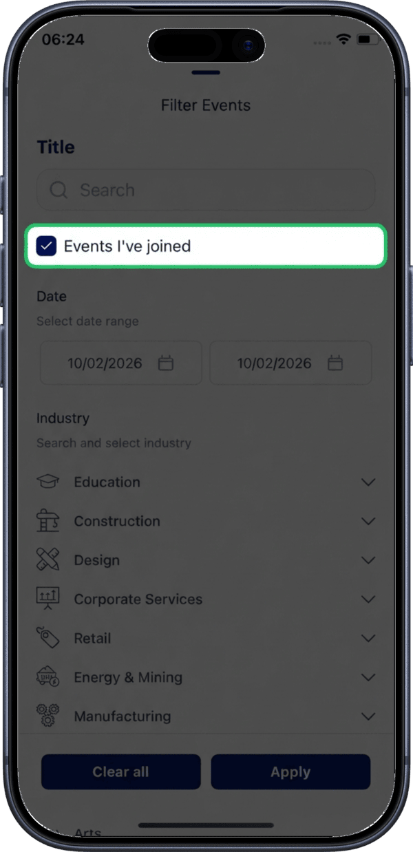 Tap the Apply button to apply your selected filters and return to the filtered events list.