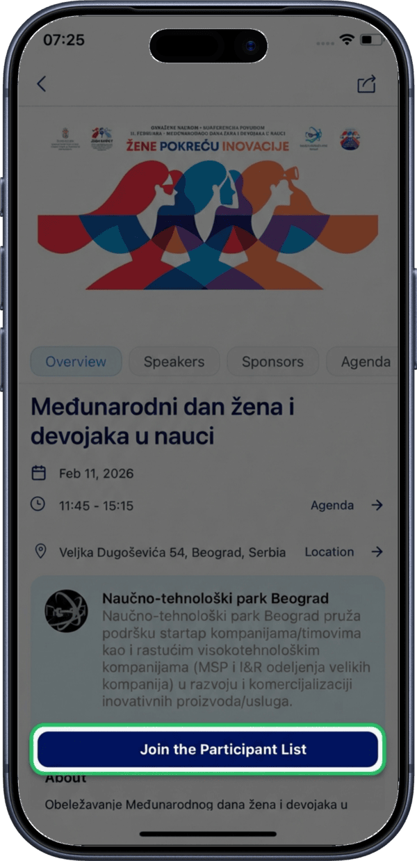 Tap the Join the Participant List button to register as a participant.