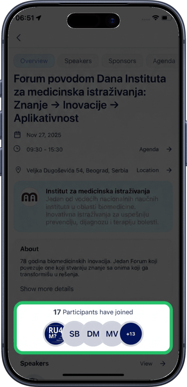 Tap on the participants section to see the full list of people attending the event.