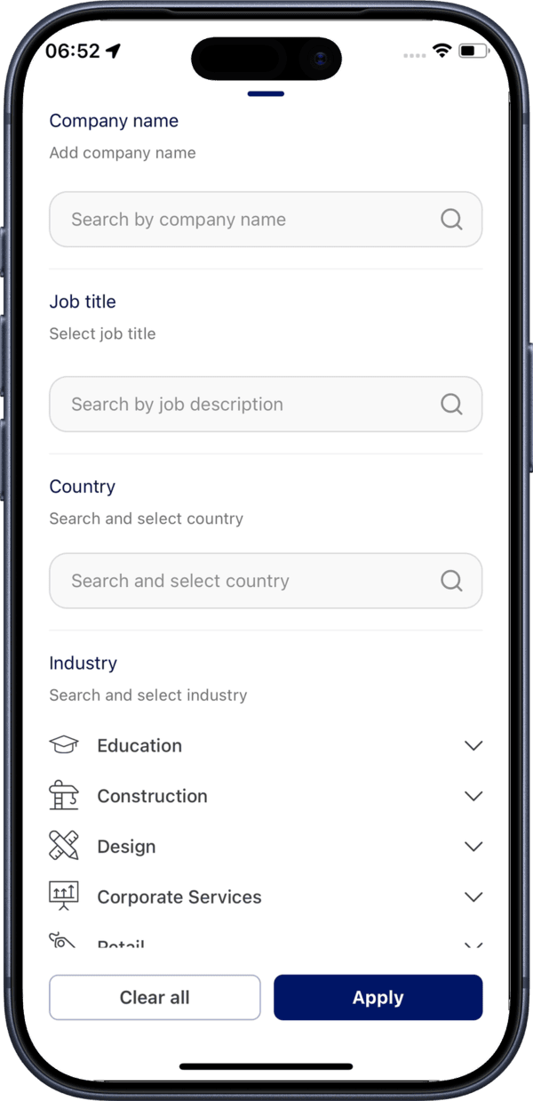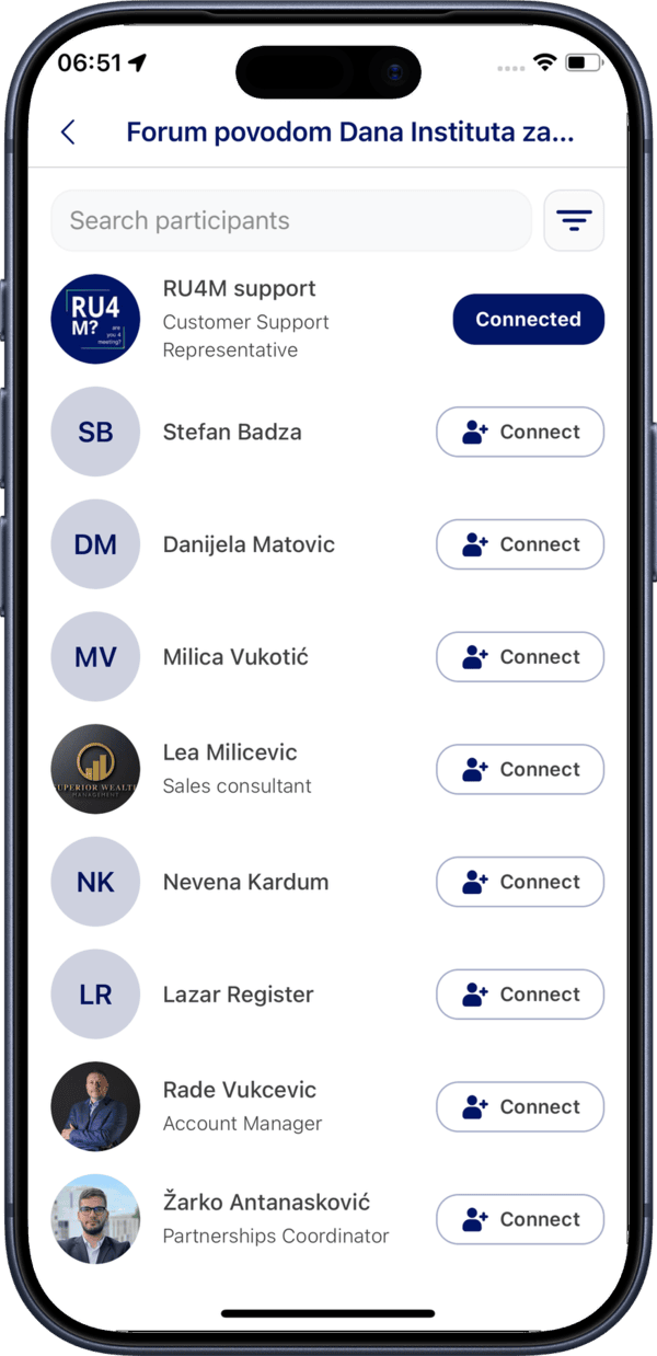 Tap the filter icon to narrow down participants by company, job title, or interests.