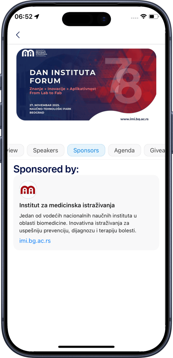 The Sponsors tab displays all event sponsors and their information.