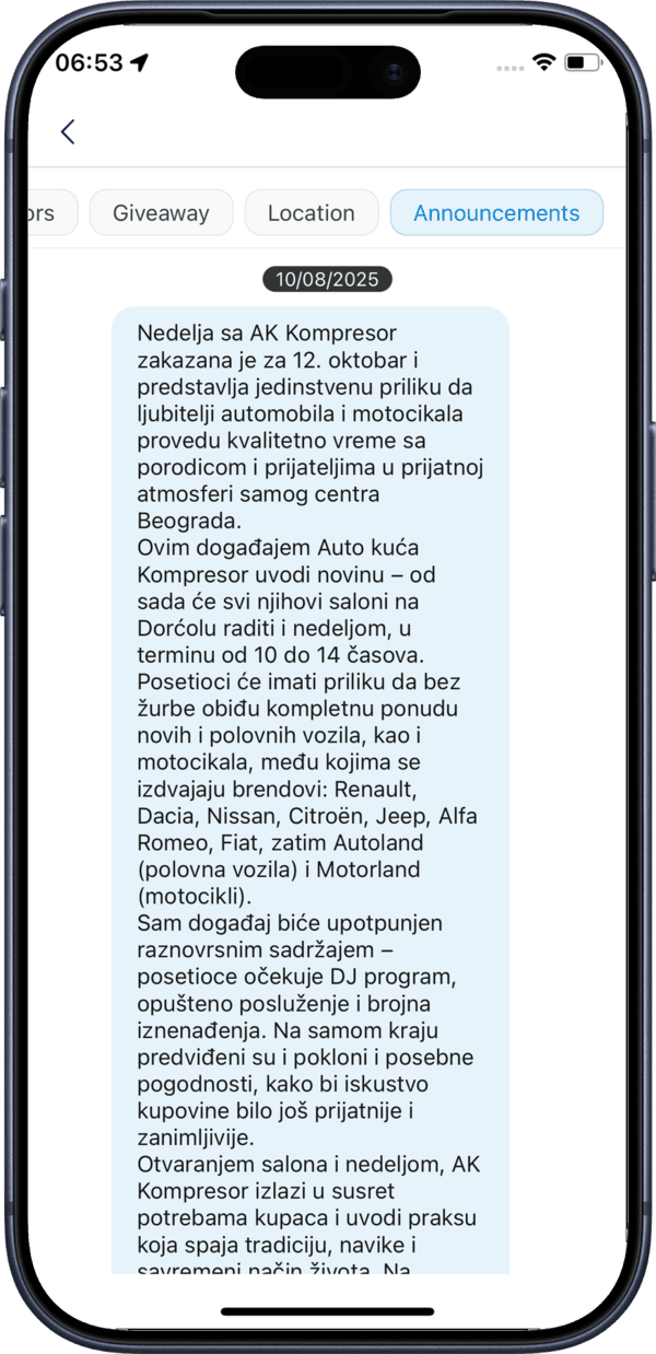 You need to join the event as a participant to see announcements and stay updated with the latest event news.