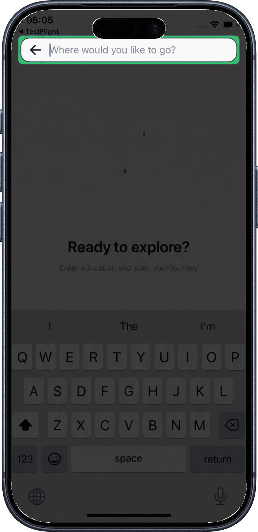 Tapping the button opens a modal with a search field for addresses and known locations.