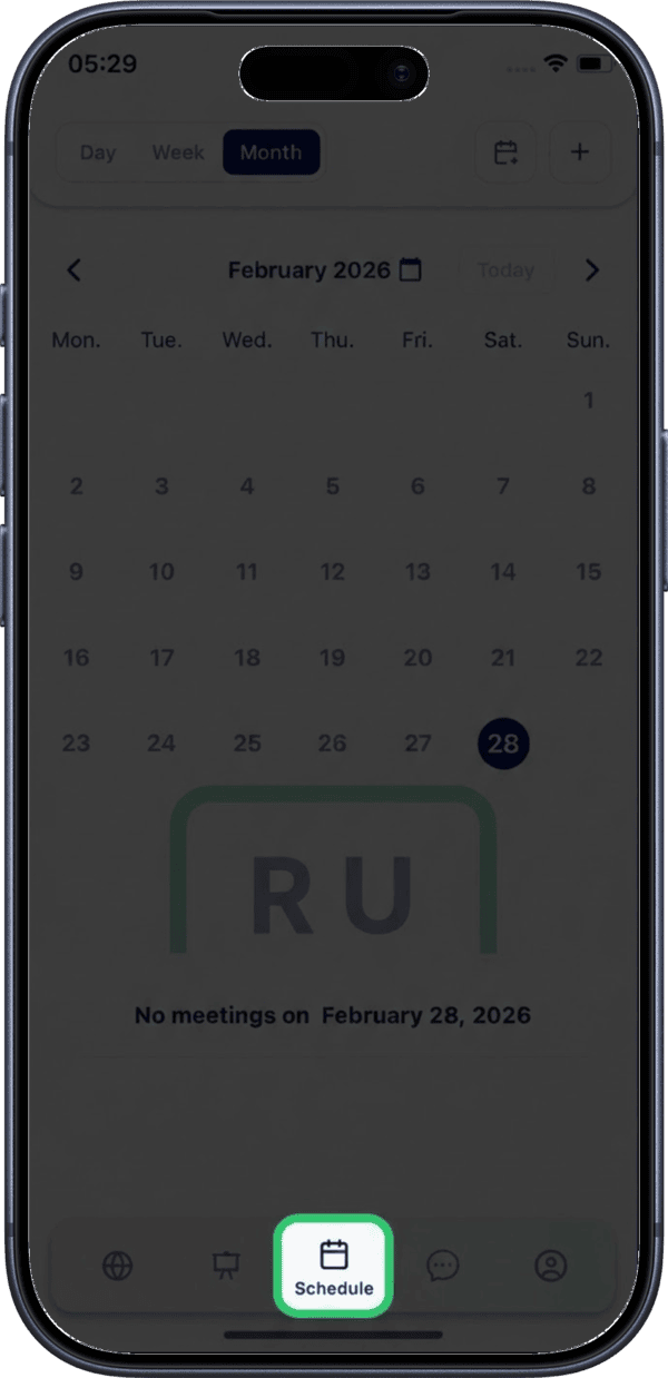 Connecting your external calendar ensures you never double-book. All your RU4M meetings will appear alongside your other events.