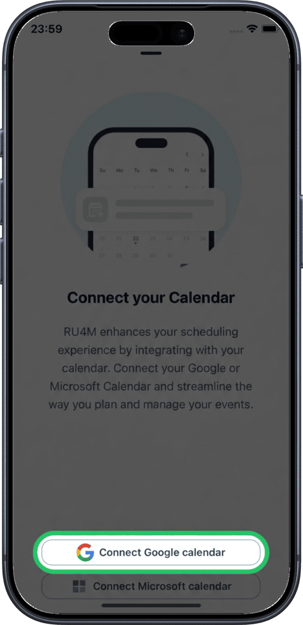 Connect your external calendars to RU4M to keep all your meetings in sync. RU4M supports Google Calendar and Microsoft Calendar integration.