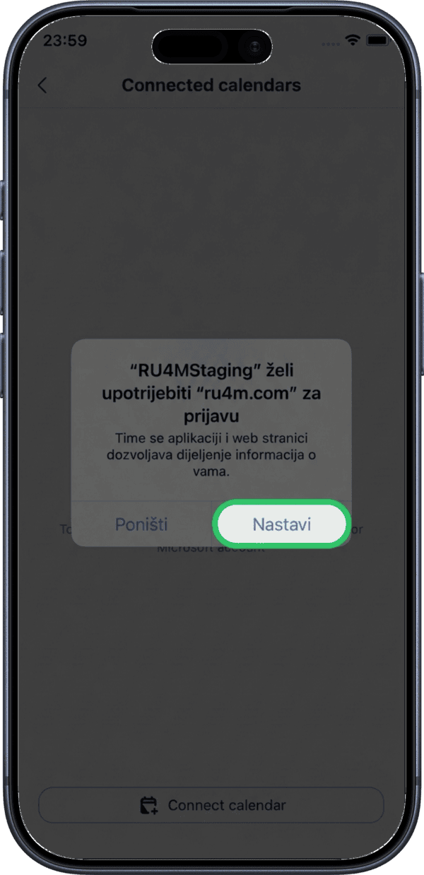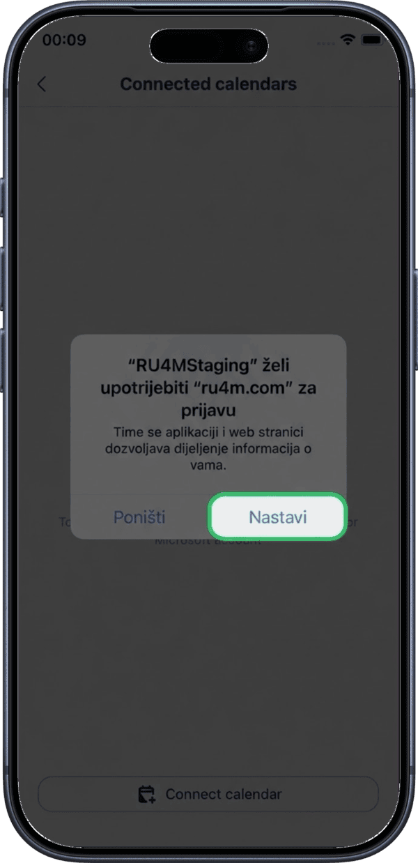 Grant the necessary permissions for RU4M to access your Microsoft Calendar.