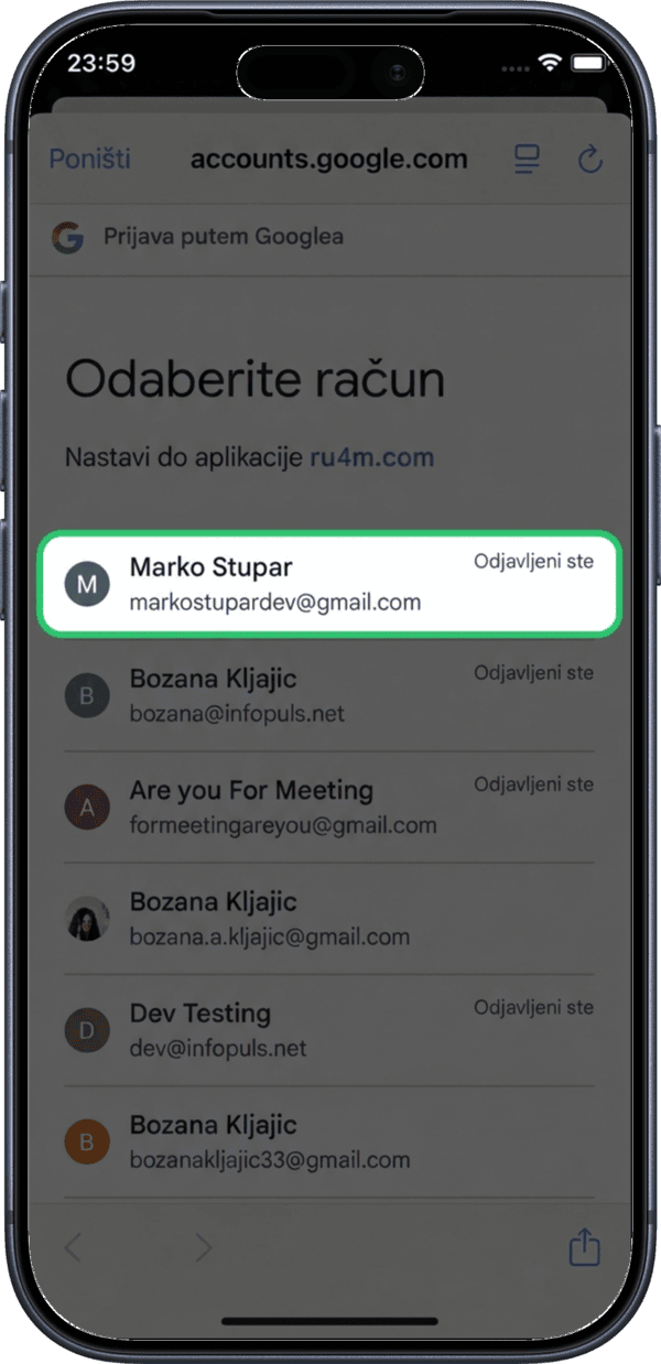 Select the Google account you want to connect.
