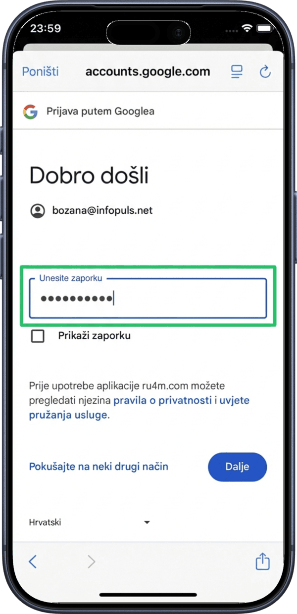 Enter your Google account password to authenticate.