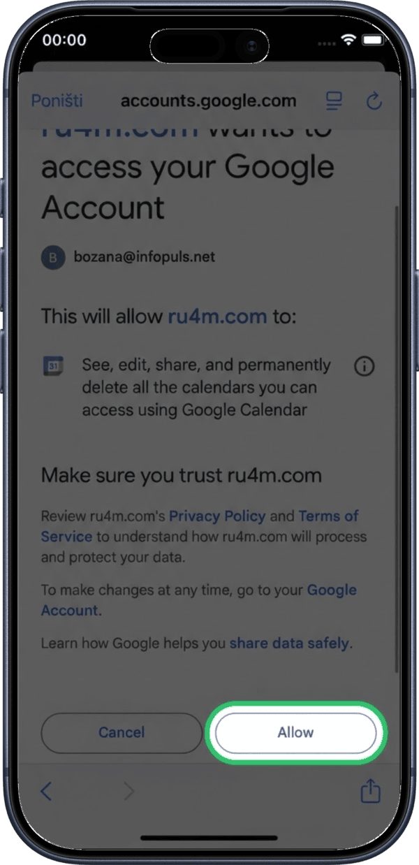 Allow RU4M to access your Google Calendar data.