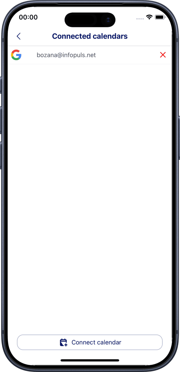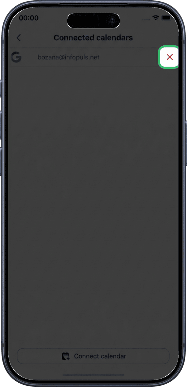 To disconnect a calendar, tap the X button next to the connected calendar.