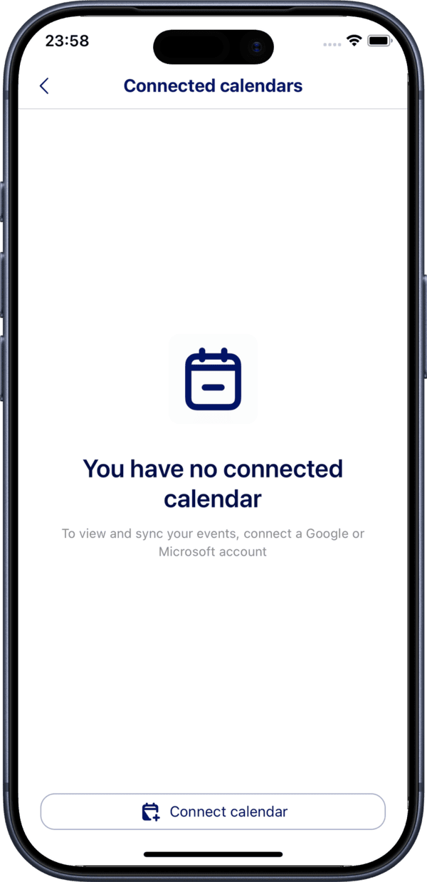 After disconnecting, you will see the empty state with no connected calendars.