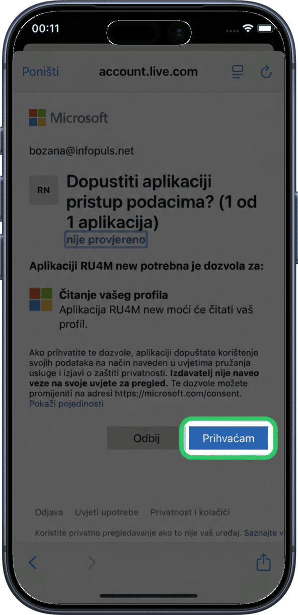 Confirm the login to proceed with the Microsoft connection.