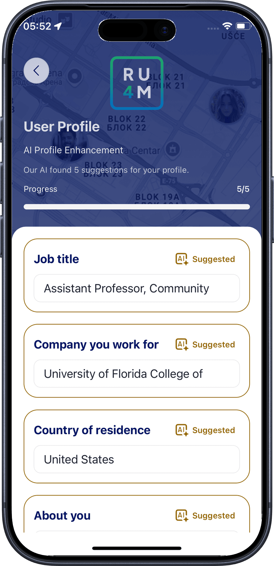 RU4M uses artificial intelligence to suggest improvements to your profile. When the AI generates a suggestion, you'll receive a notification and can choose to accept or decline the changes.