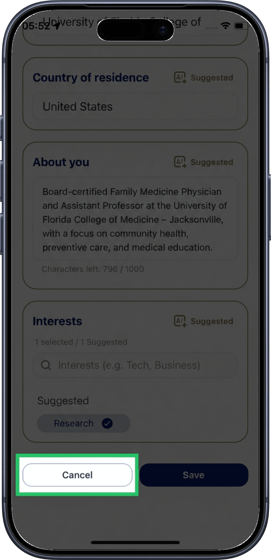 The more information you add to your profile, the better the AI can generate relevant suggestions. Start by filling in your basic details in Edit Profile.
