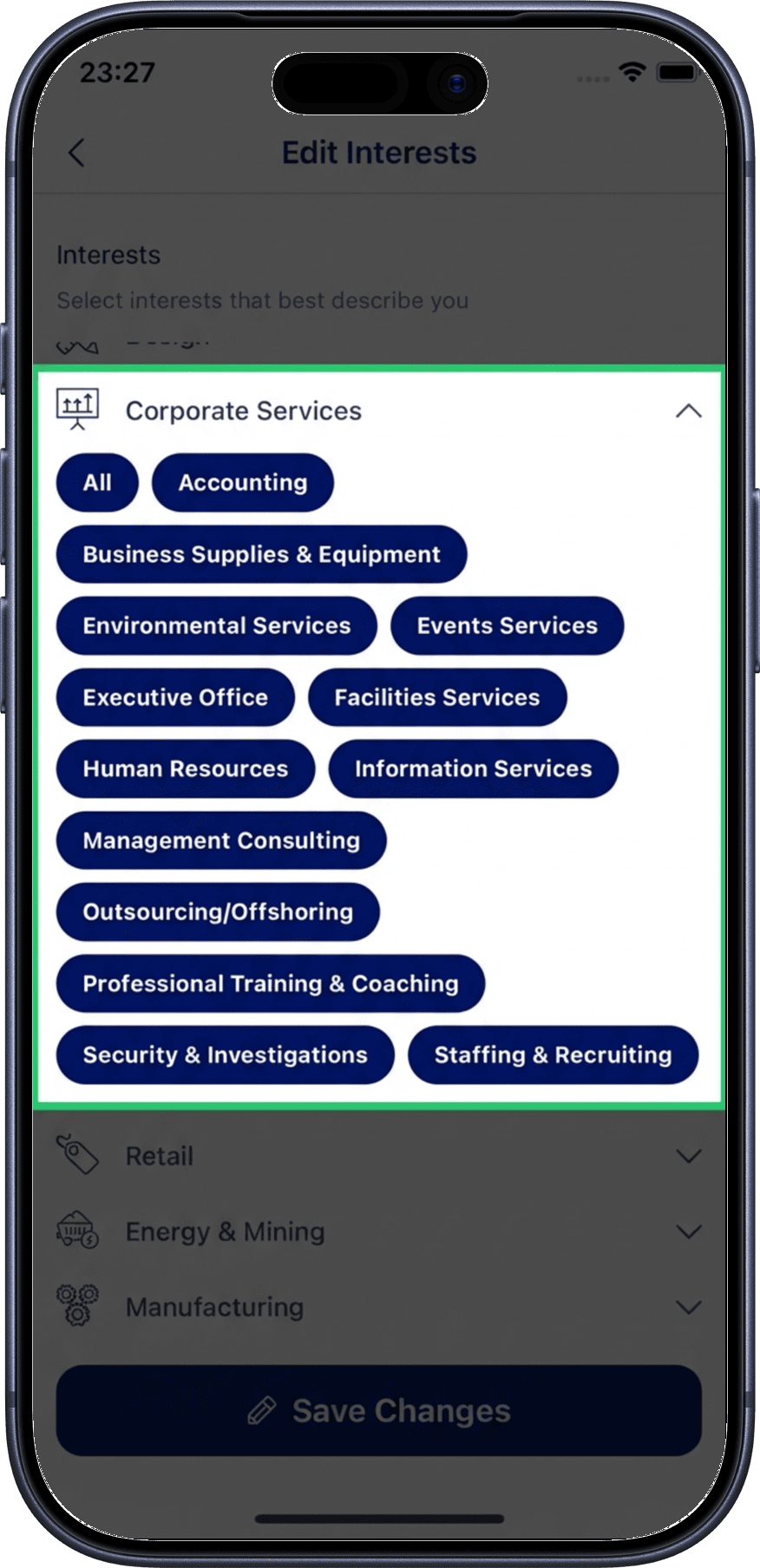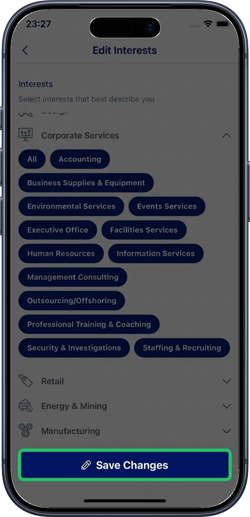 When you're done selecting your interests, tap Save Changes to update your profile.